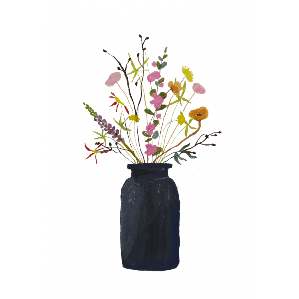 Poster 'veldboeket in blauwe vaas'